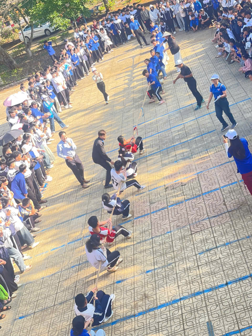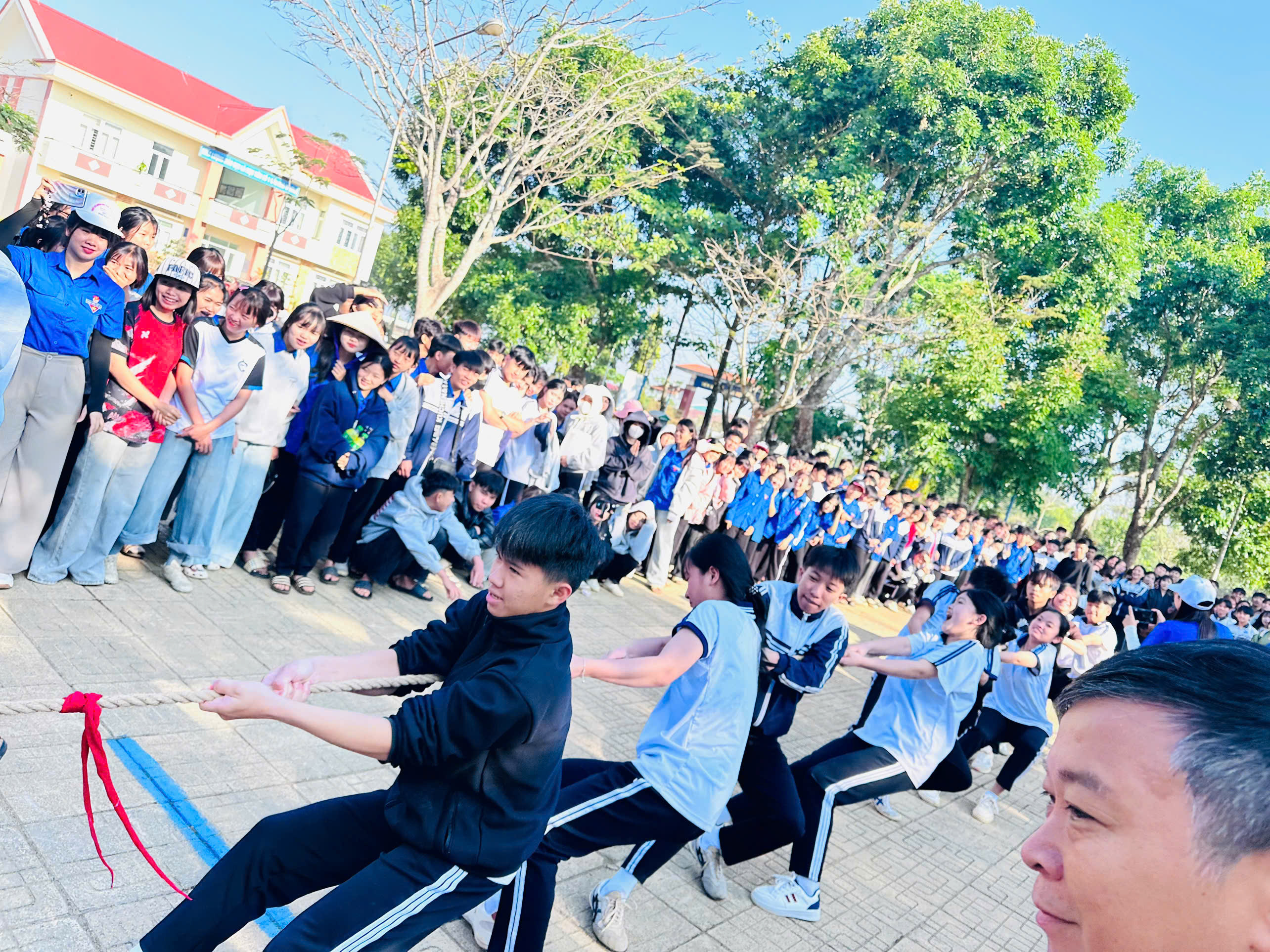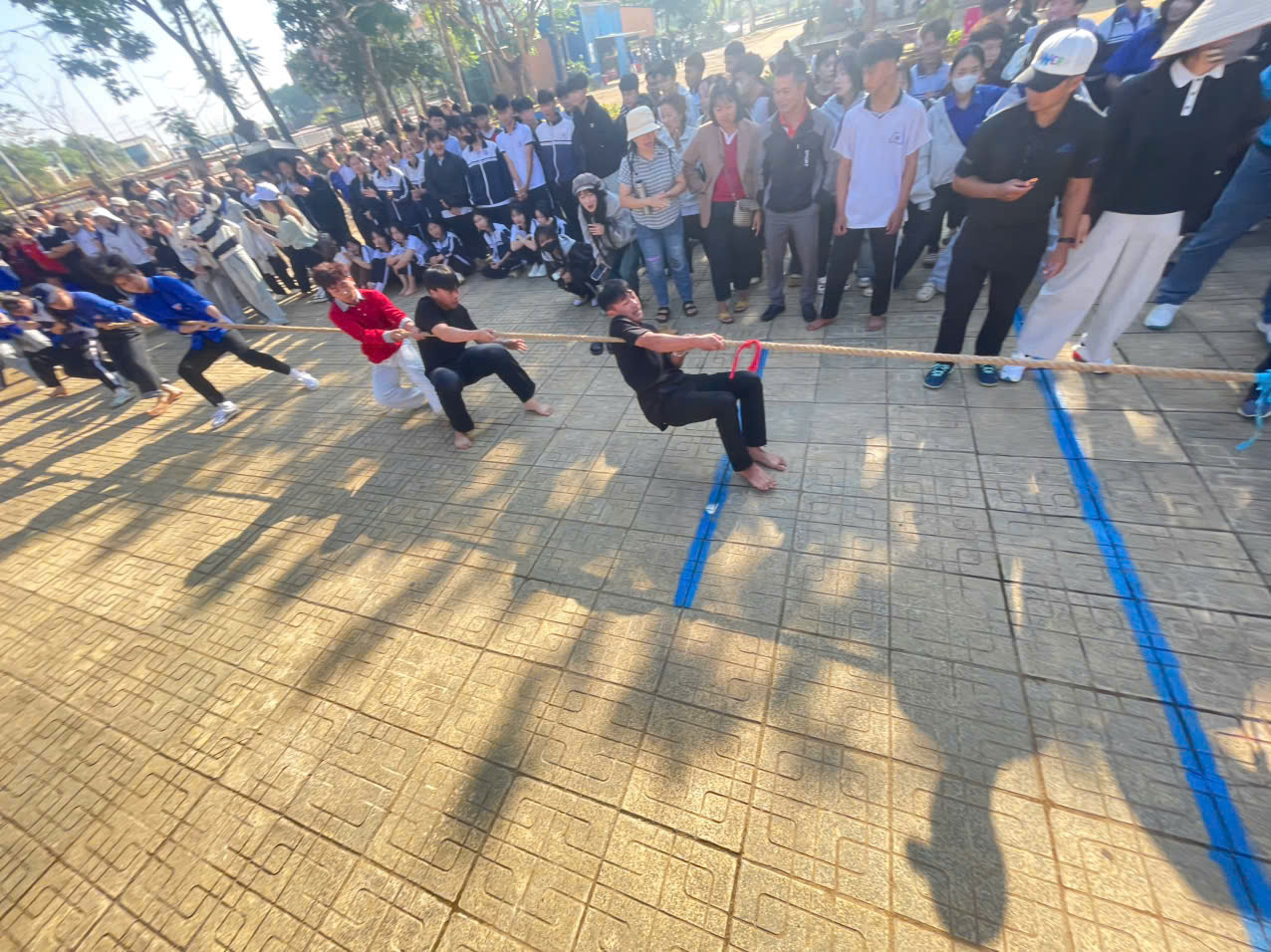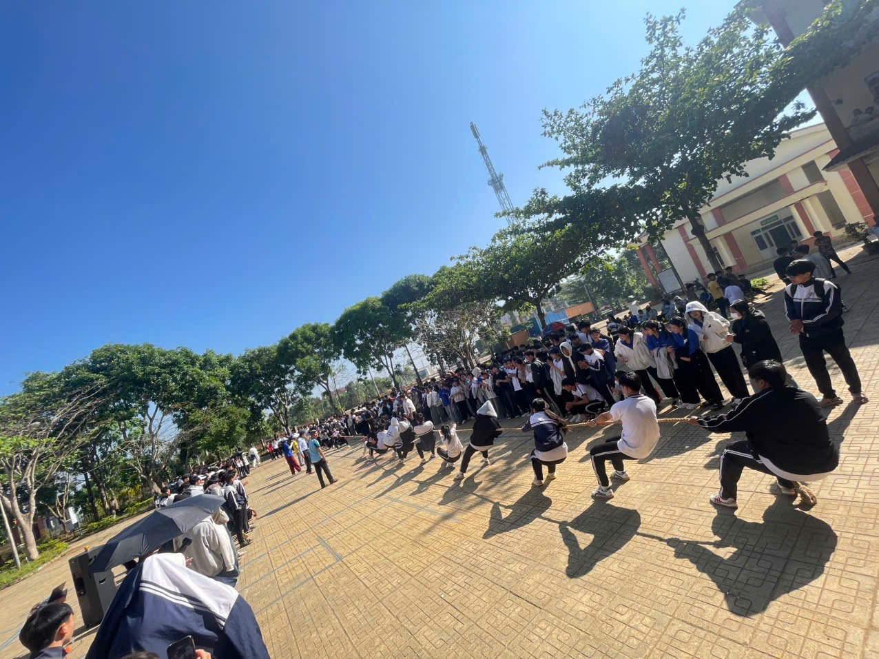Học sinh toàn trường tham gia 3 trò chơi vui vẻ: Kéo co (1), chuyền trứng (2) và vòng quay thời gian (3). Kết quả, trò chơi (1) trao nhất 3 khối cho 3 tập thể: 10a4 – 11b7 – 12c7. Ở trò chơi (2) trao giải Nhất (10a1), Nhì (12c6) và Ba (11b8). Riêng trò chơi (3) trao giải Nhất – Nhì – Ba cho 3 tập thể: 10a6 – 12c5 – 11b6. Kết thúc các trò chơi, dù có những giọt mồ hôi vương trên khuôn mặt trong sáng, dù có đôi chút mệt mỏi song nụ cười trong sáng, xinh tươi vẫn hiện hữu trong đôi mắt, nụ cười của toàn thể học sinh. Đó là niềm vui, hạnh phúc, nhiệt huyết tuổi trẻ luôn được thắp lên mỗi ngày từ “trường học hạnh phúc”.