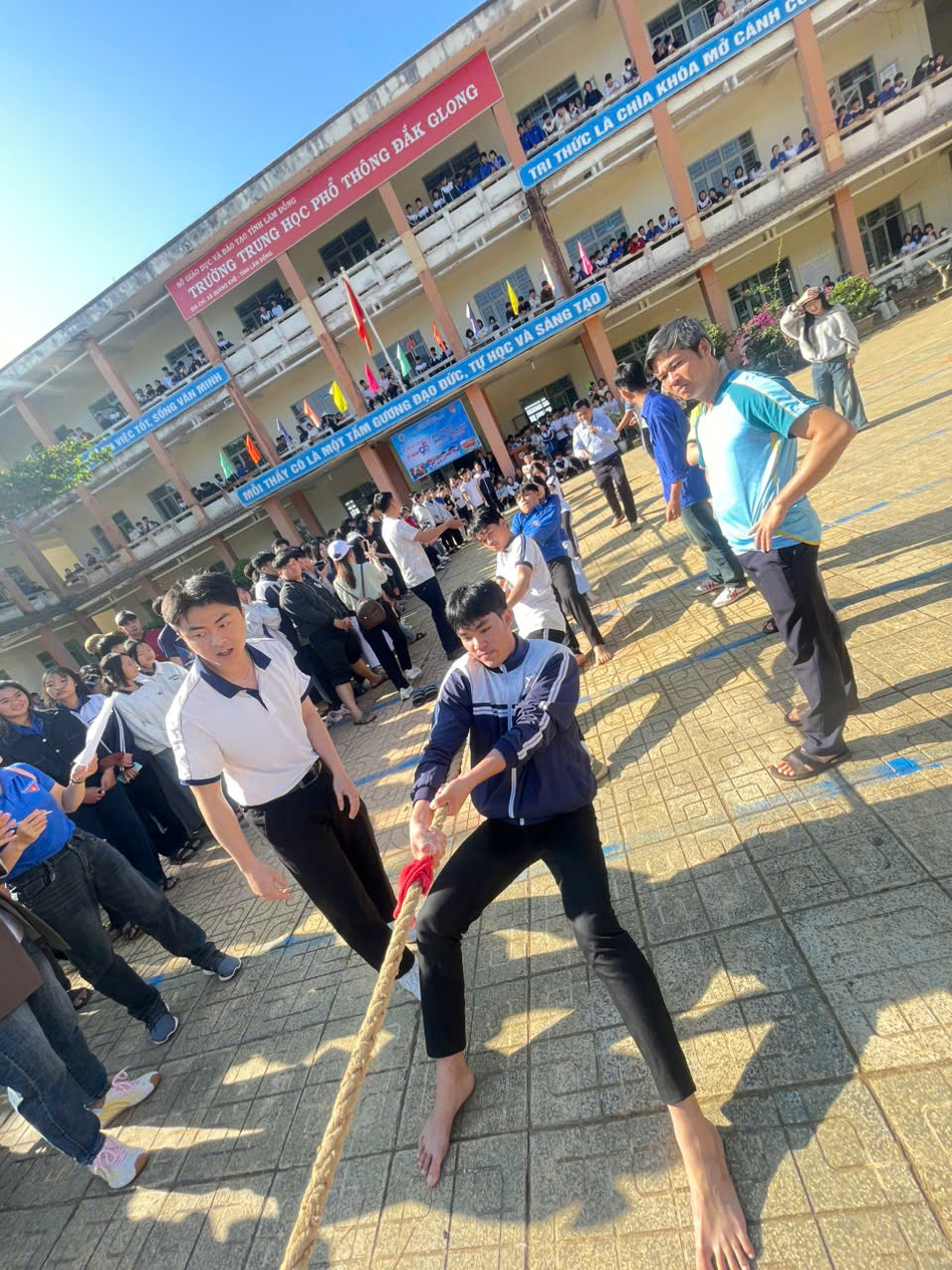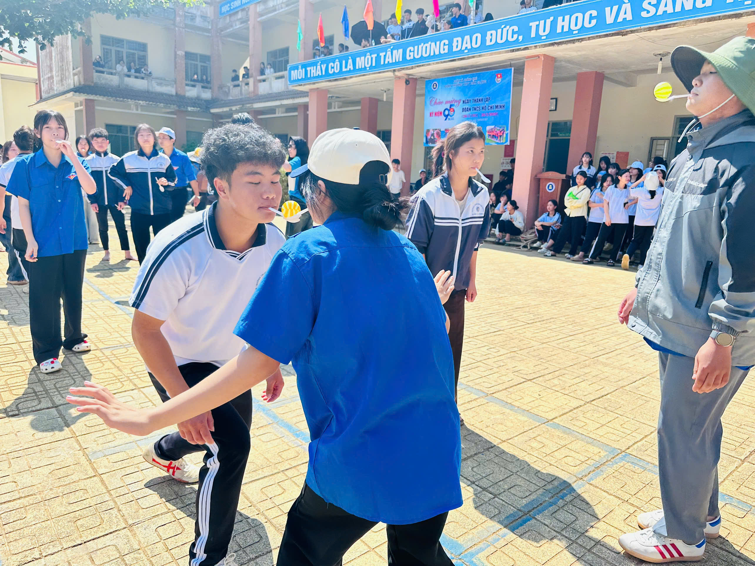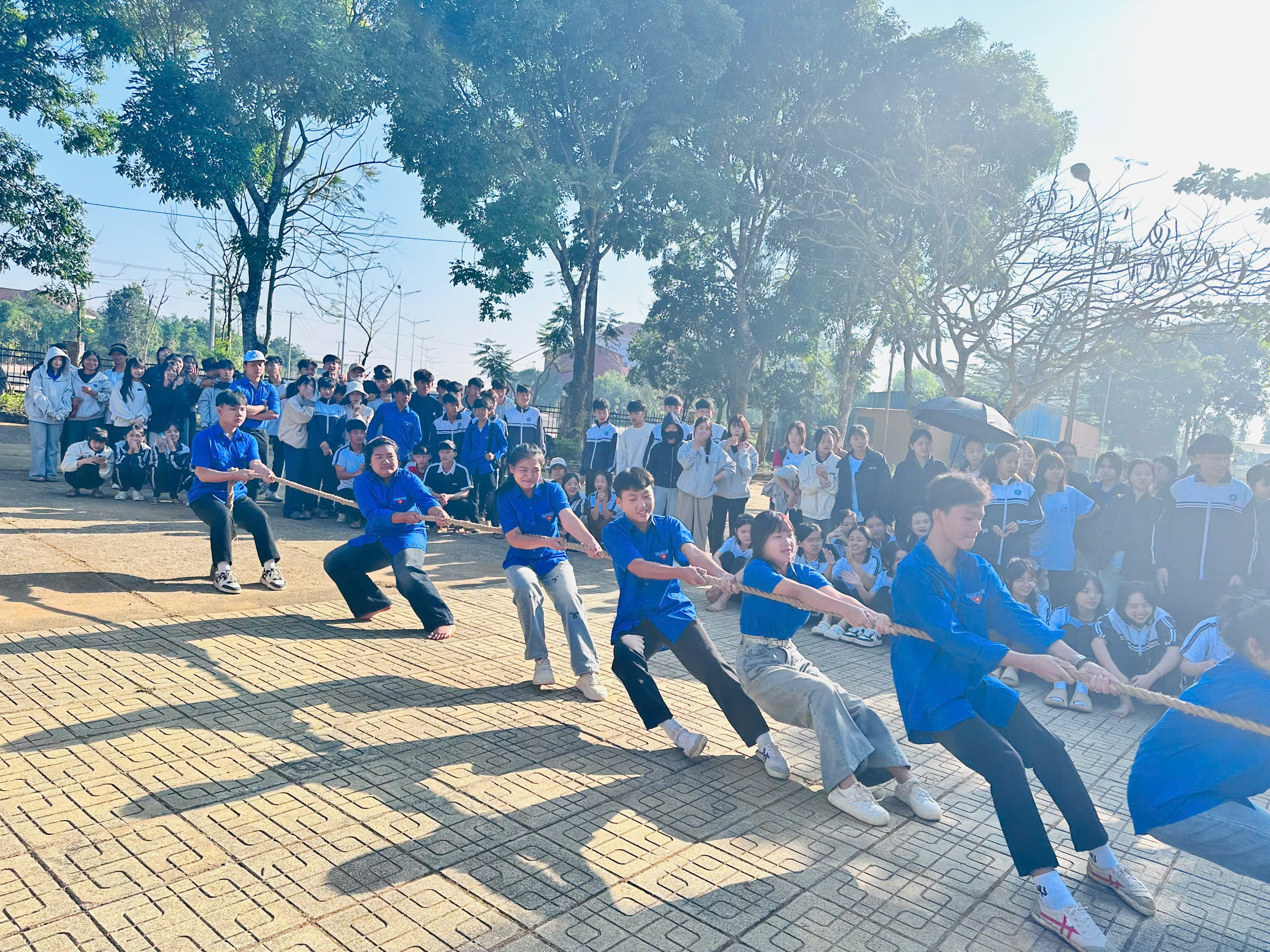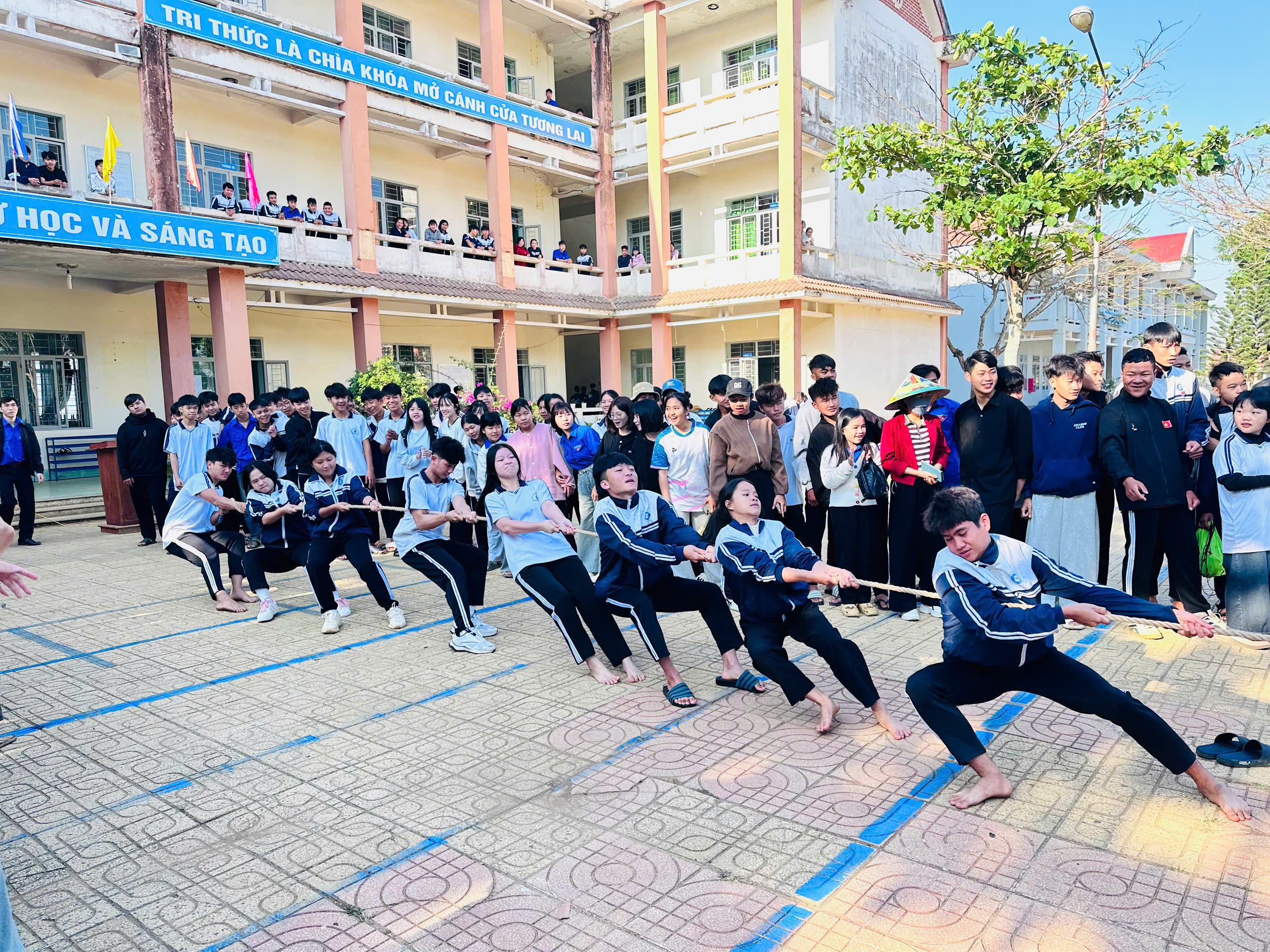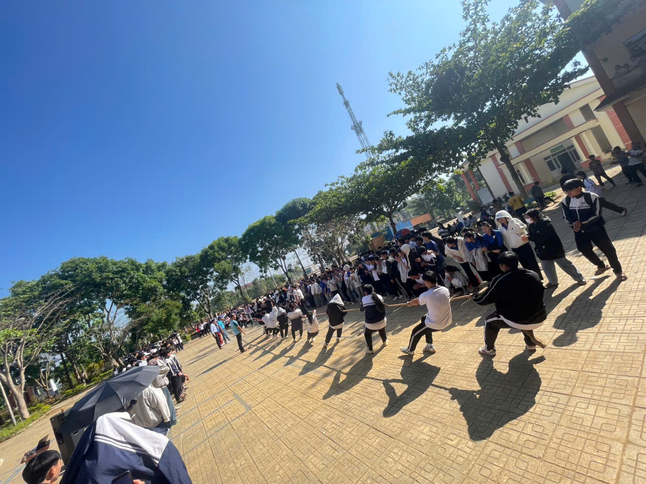 Học sinh toàn trường tham gia 3 trò chơi vui vẻ: Kéo co (1), chuyền trứng (2) và vòng quay thời gian (3). Kết quả, trò chơi (1) trao nhất 3 khối cho 3 tập thể: 10a4 – 11b7 – 12c7. Ở trò chơi (2) trao giải Nhất (10a1), Nhì (12c6) và Ba (11b8). Riêng trò chơi (3) trao giải Nhất – Nhì – Ba cho 3 tập thể: 10a6 – 12c5 – 11b6. Kết thúc các trò chơi, dù có những giọt mồ hôi vương trên khuôn mặt trong sáng, dù có đôi chút mệt mỏi song nụ cười trong sáng, xinh tươi vẫn hiện hữu trong đôi mắt, nụ cười của toàn thể học sinh. Đó là niềm vui, hạnh phúc, nhiệt huyết tuổi trẻ luôn được thắp lên mỗi ngày từ “trường học hạnh phúc”.