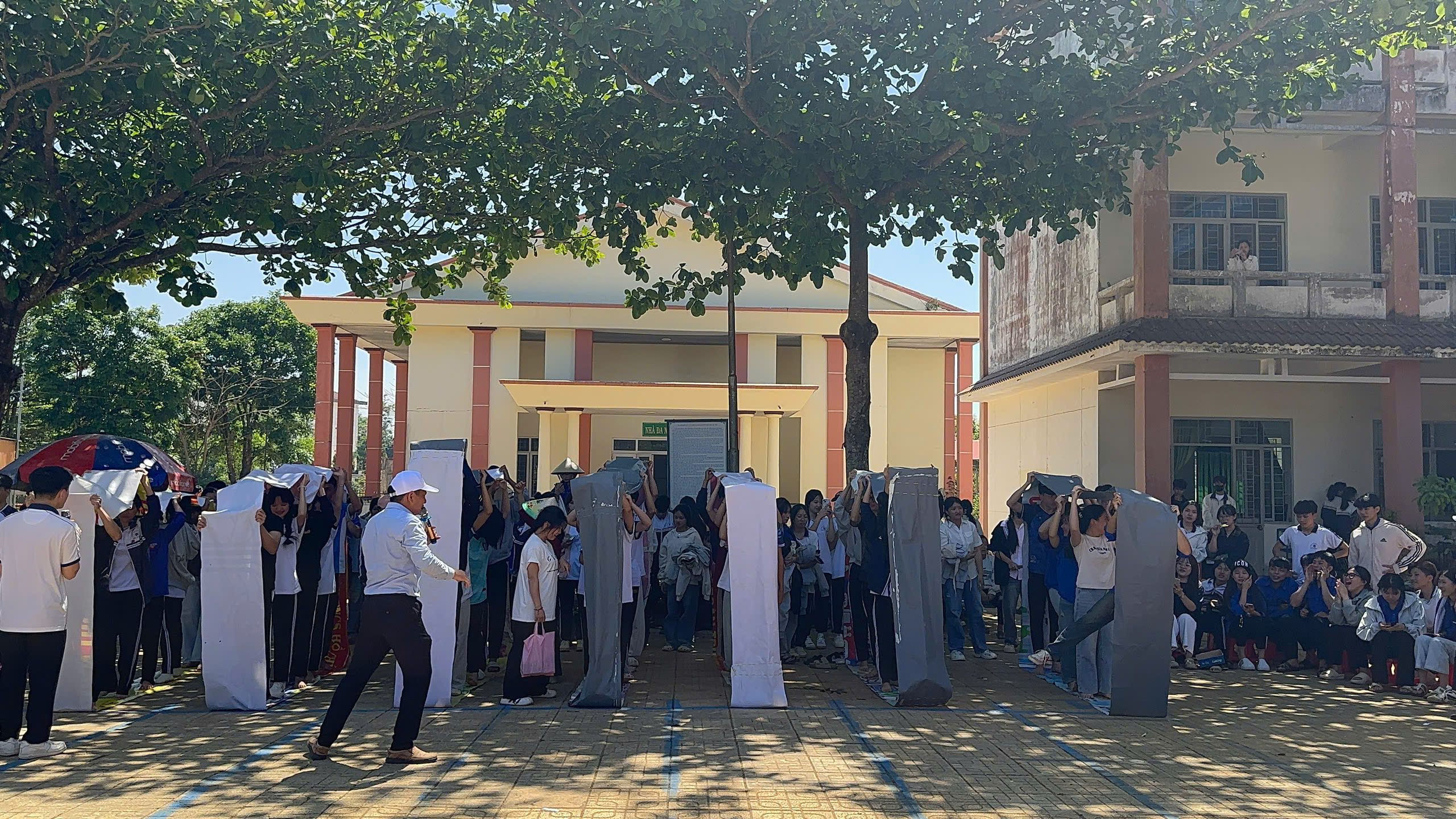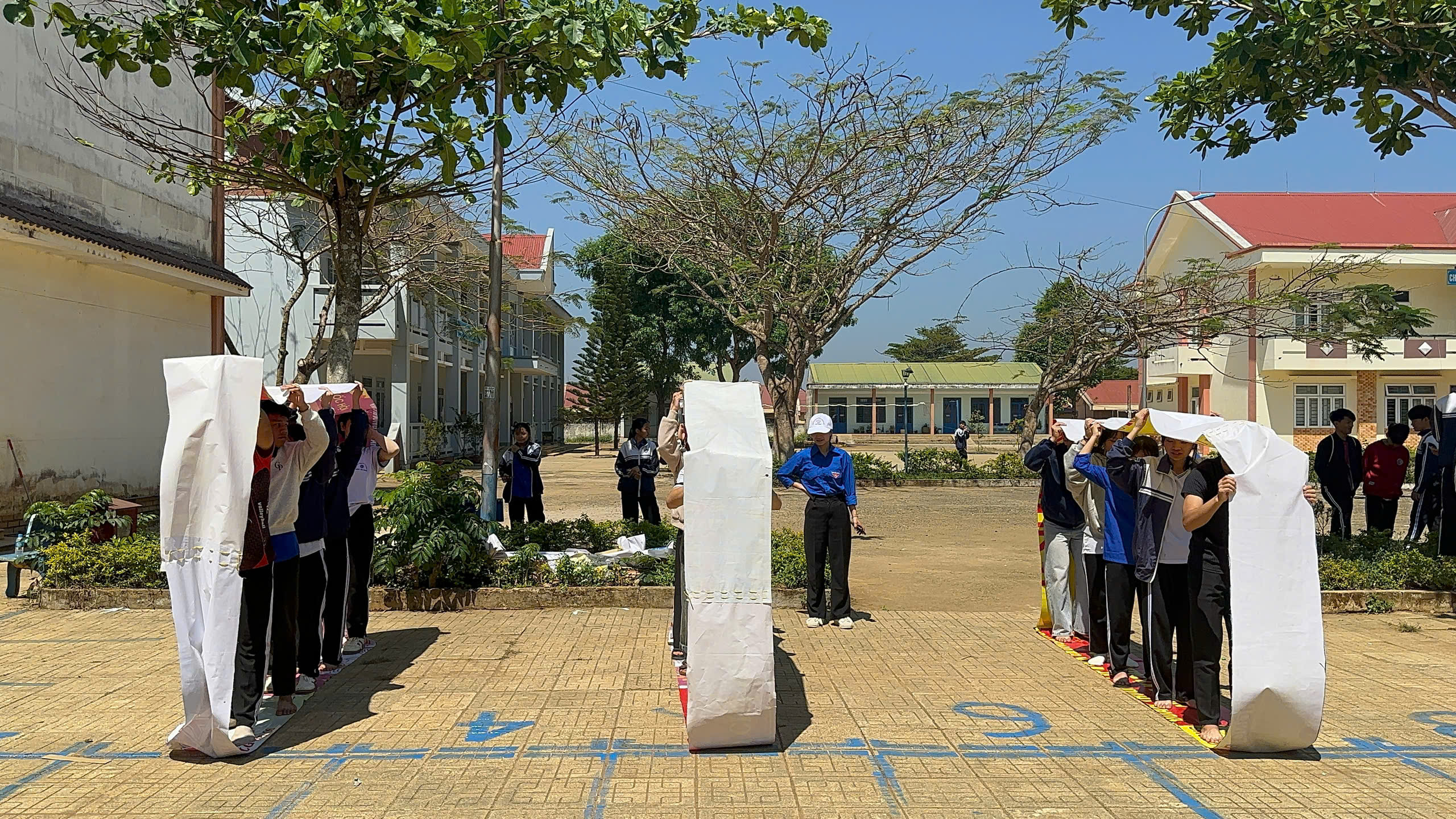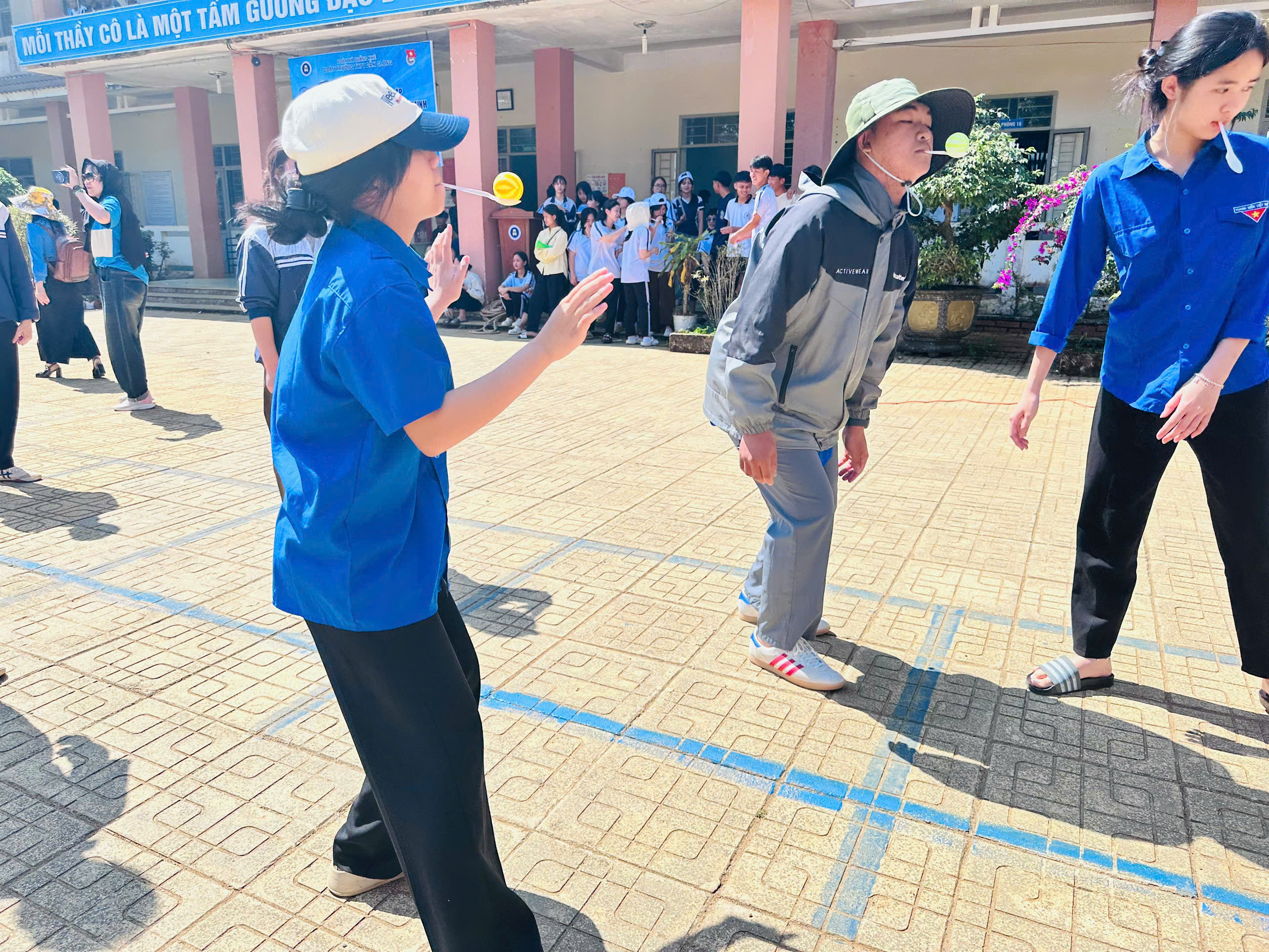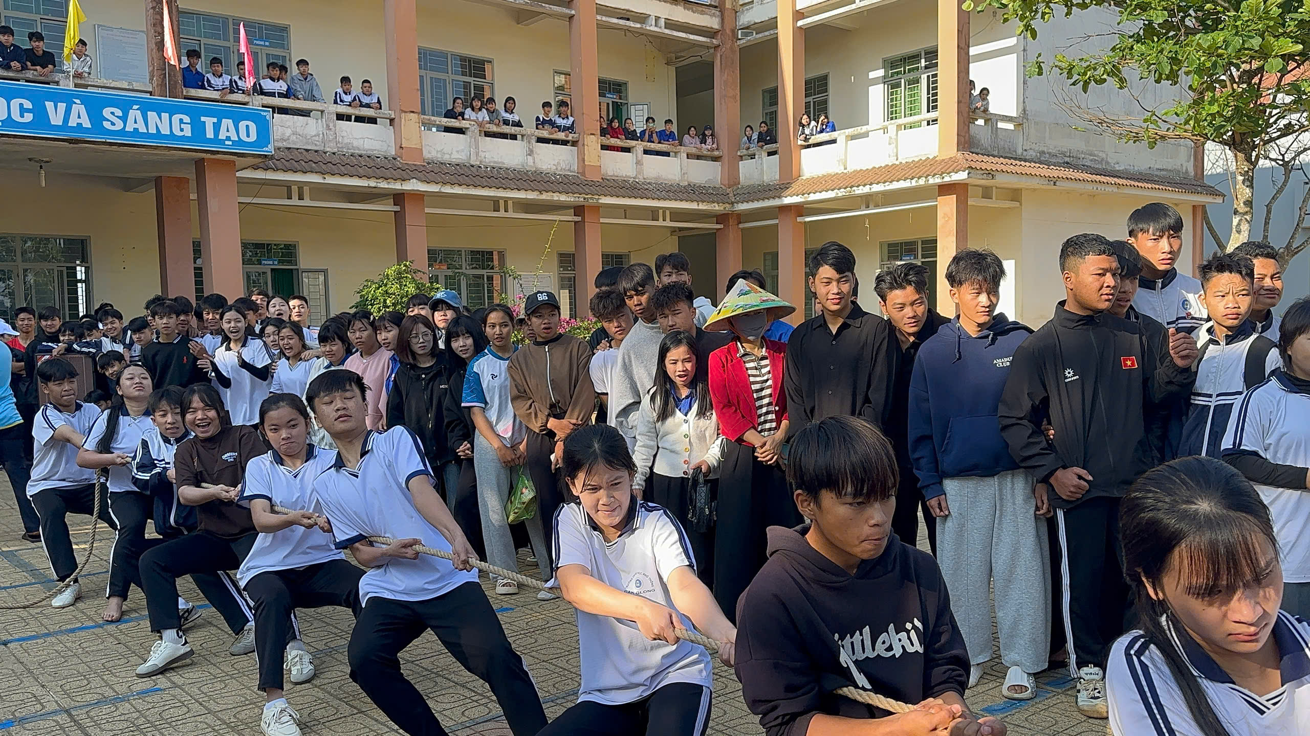 Học sinh toàn trường tham gia 3 trò chơi vui vẻ: Kéo co (1), chuyền trứng (2) và vòng quay thời gian (3). Kết quả, trò chơi (1) trao nhất 3 khối cho 3 tập thể: 10a4 – 11b7 – 12c7. Ở trò chơi (2) trao giải Nhất (10a1), Nhì (12c6) và Ba (11b8). Riêng trò chơi (3) trao giải Nhất – Nhì – Ba cho 3 tập thể: 10a6 – 12c5 – 11b6. Kết thúc các trò chơi, dù có những giọt mồ hôi vương trên khuôn mặt trong sáng, dù có đôi chút mệt mỏi song nụ cười trong sáng, xinh tươi vẫn hiện hữu trong đôi mắt, nụ cười của toàn thể học sinh. Đó là niềm vui, hạnh phúc, nhiệt huyết tuổi trẻ luôn được thắp lên mỗi ngày từ “trường học hạnh phúc”.