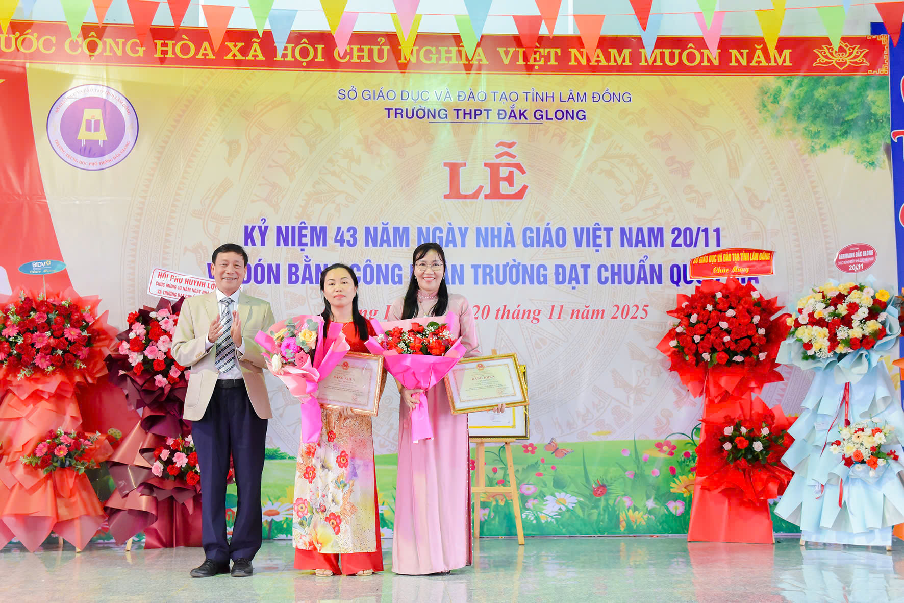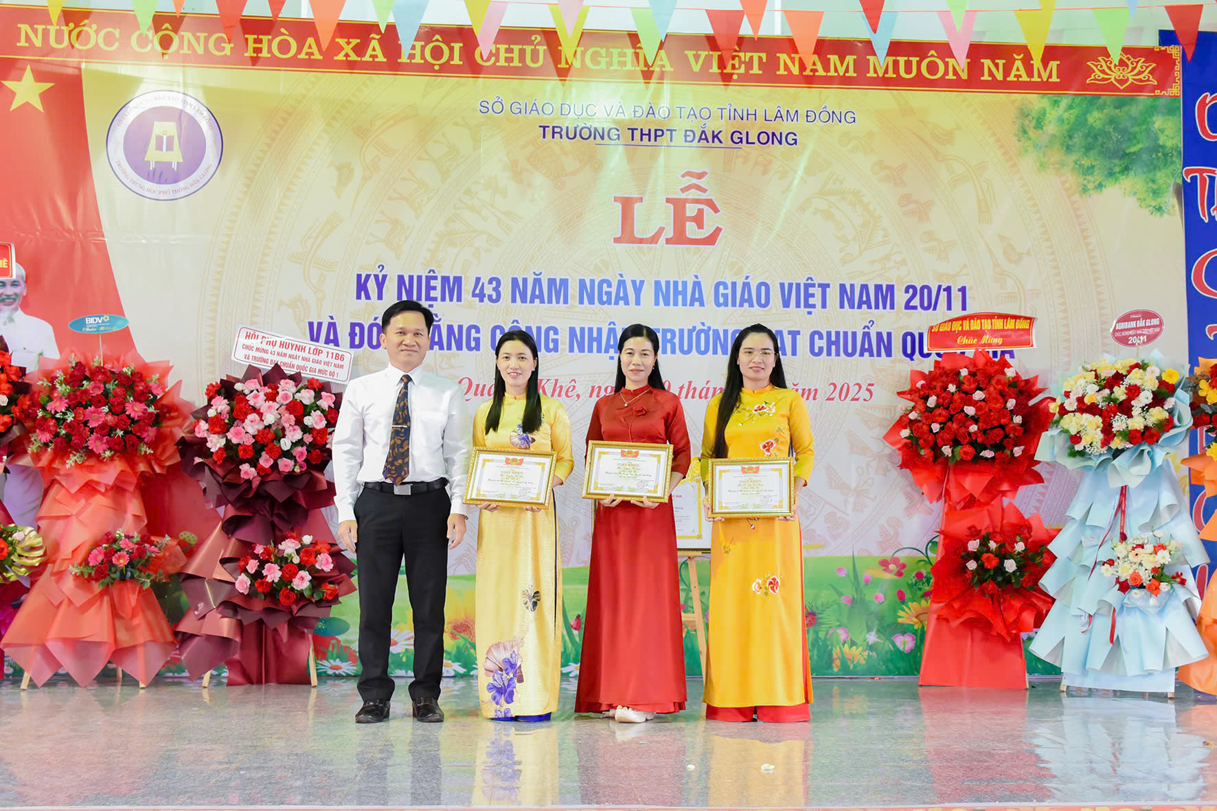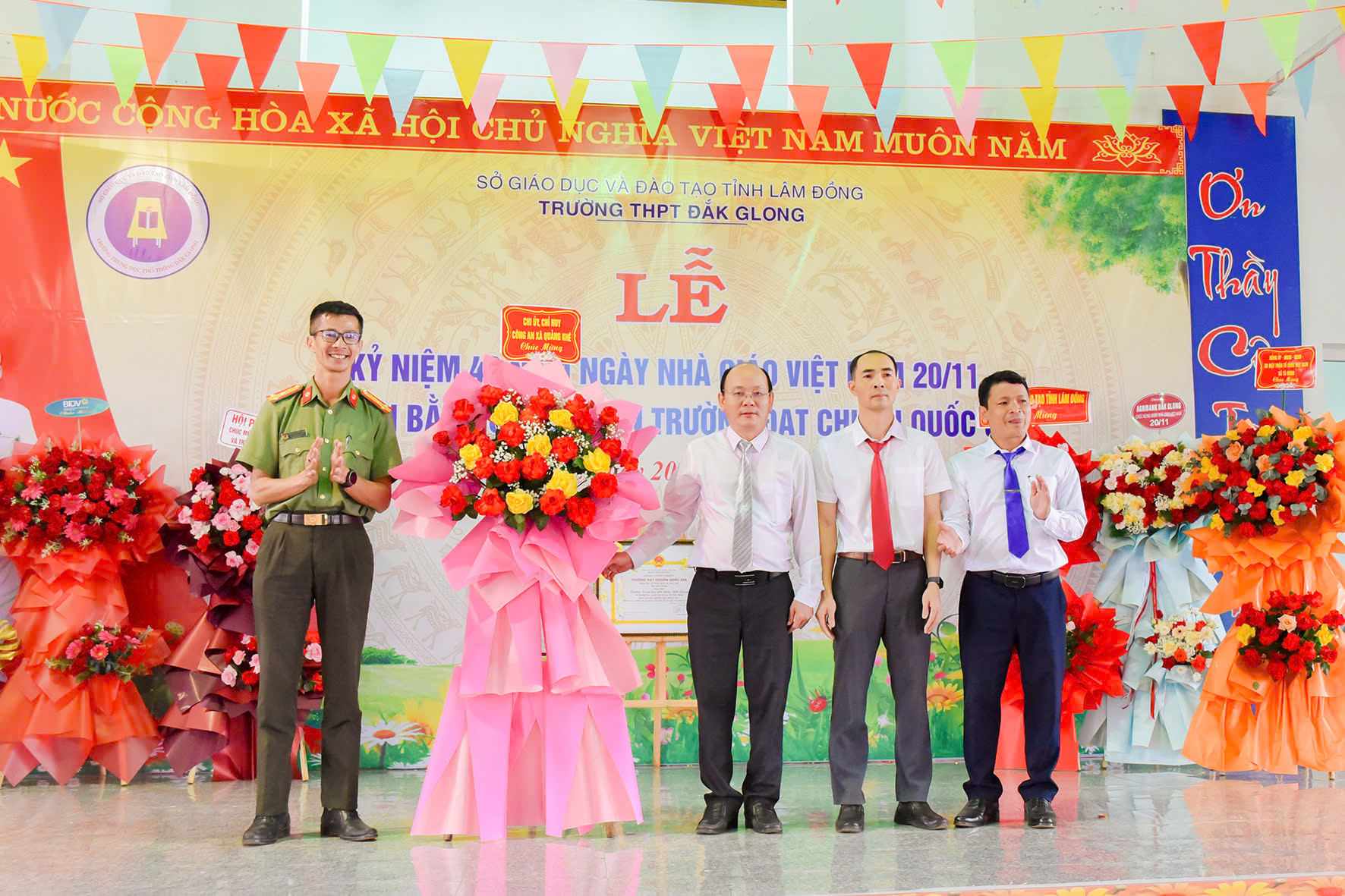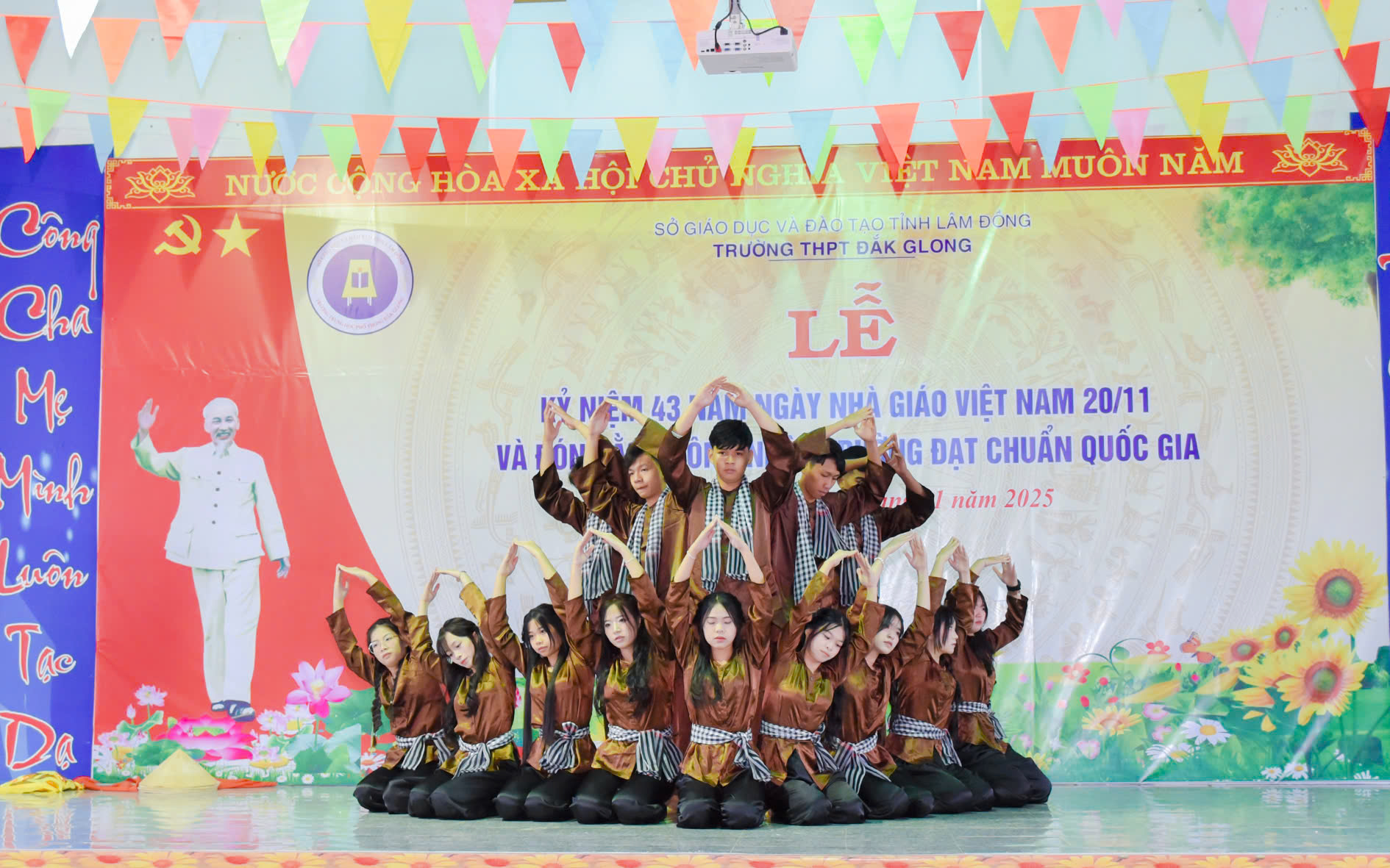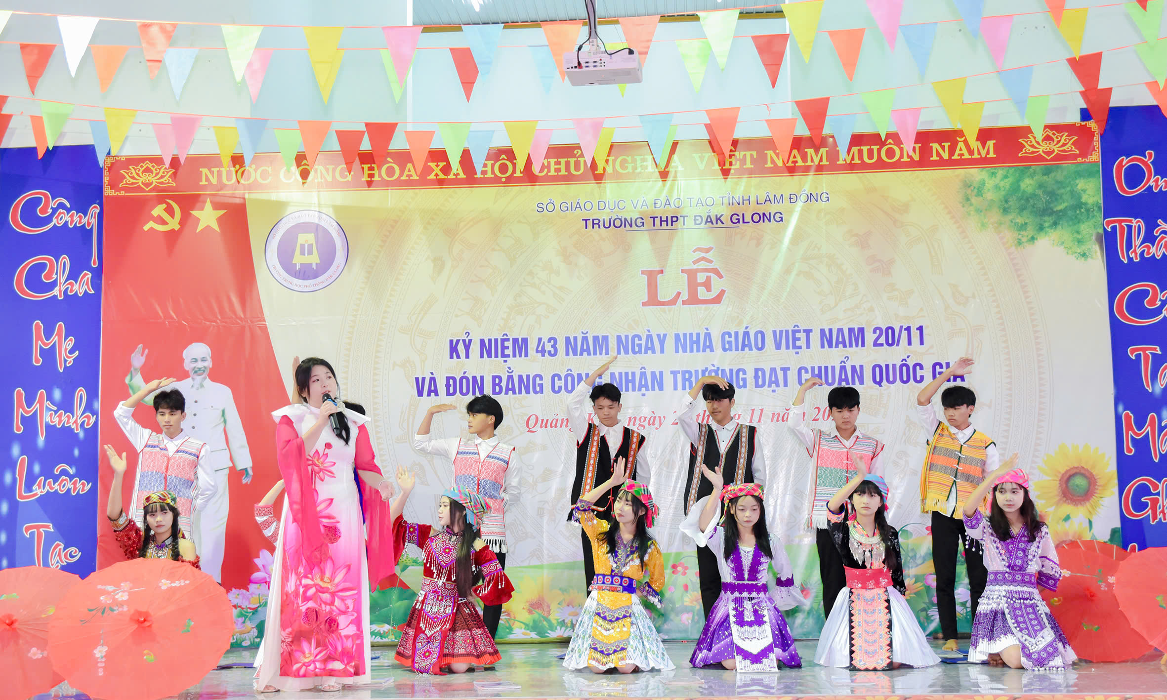 Tháng 11 lại về, hòa chung với niềm hân hoan của cả nước hướng về ngày 20 tháng 11 – Ngày tôn vinh những thầy cô giáo đã tận tâm gieo hạt tri thức, ươm mầm nhân cách cho bao thế hệ học trò; hôm nay vào lúc 07h45 phút ngày 20/11/2025, trường THPT Đăk Glong long trọng tổ chức Lễ kỷ niệm 43 năm Ngày Nhà giáo Việt Nam (20/11/1982 – 20/11/2025) và đón Bằng công nhân trường chuẩn quốc gia mức độ 1.