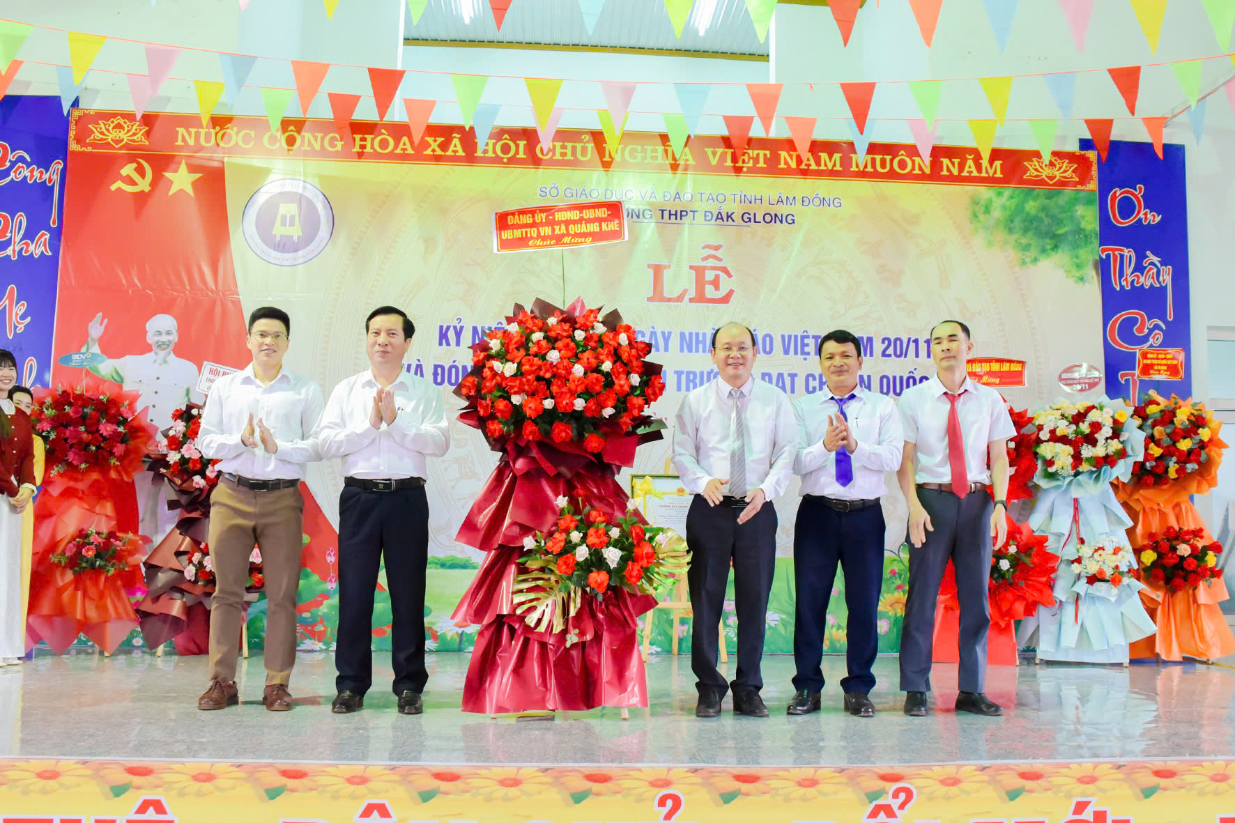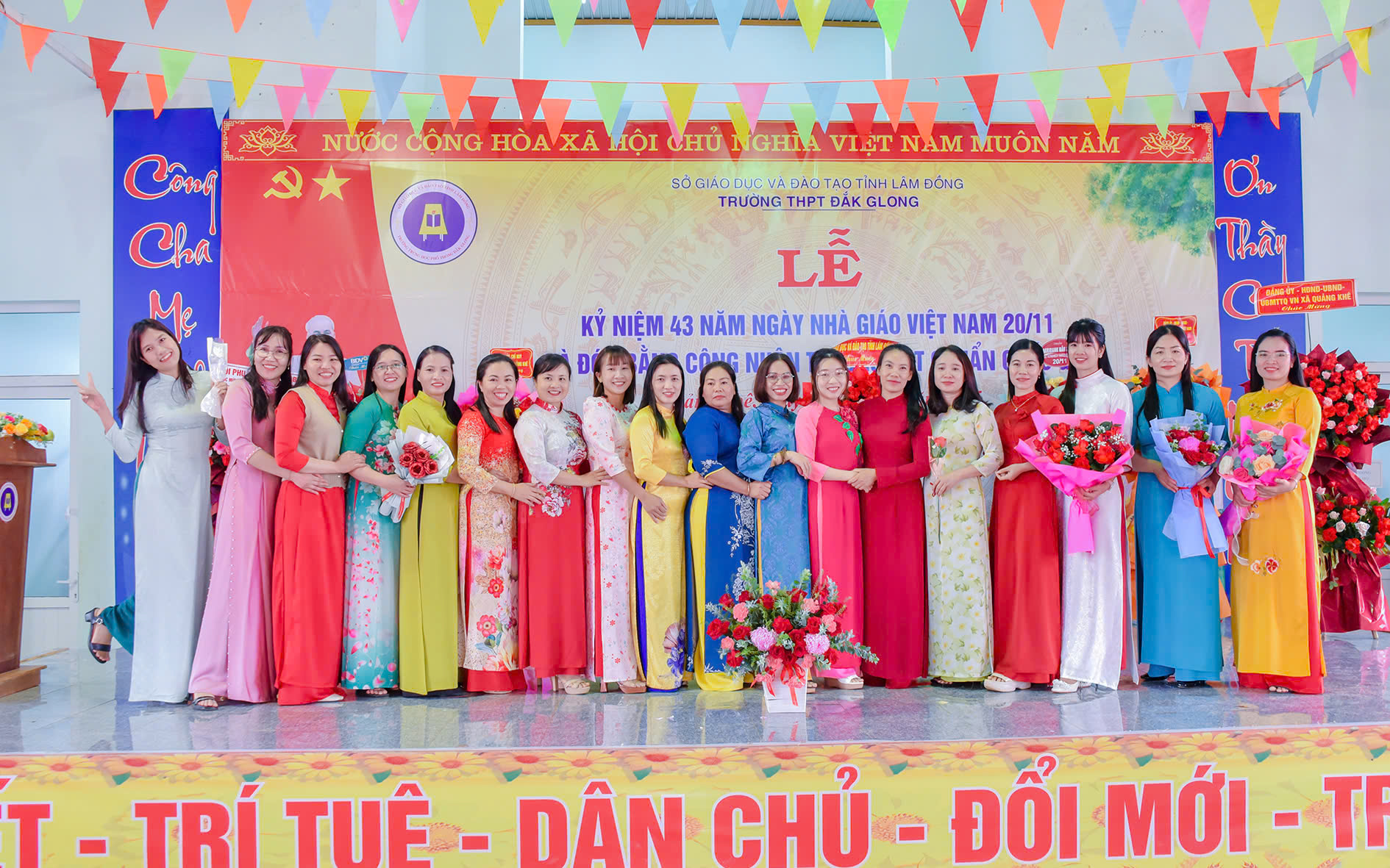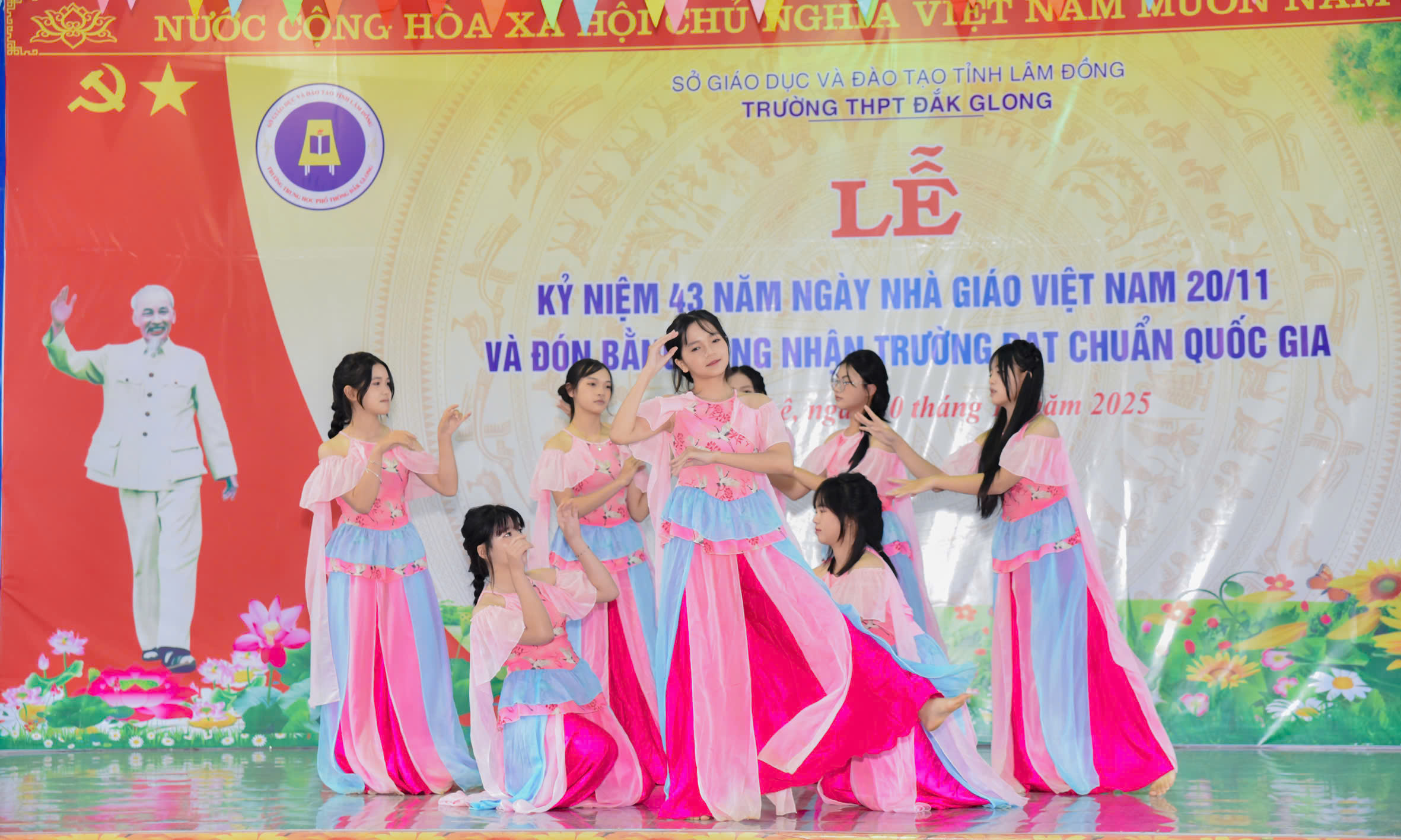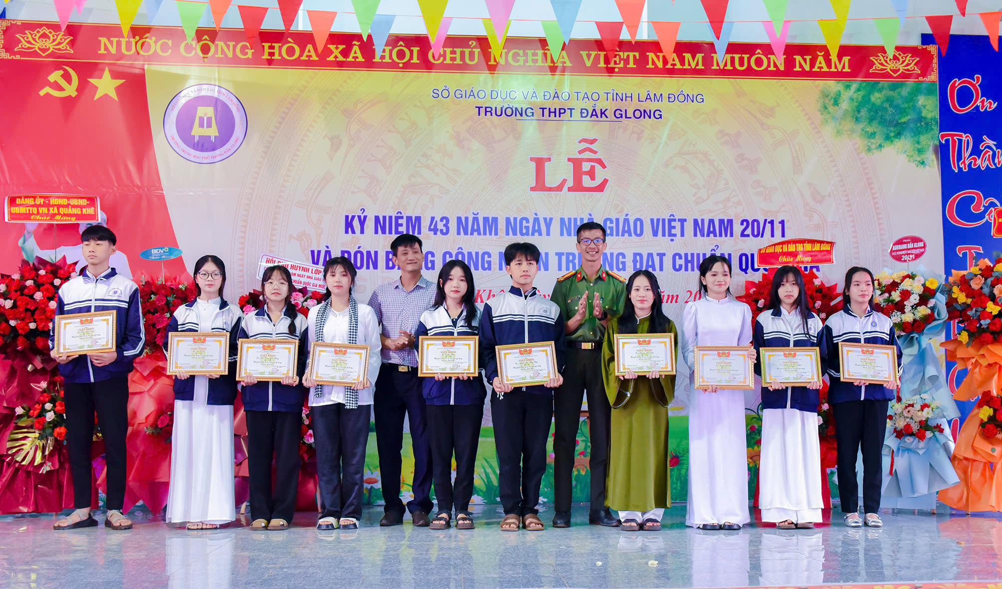 Tháng 11 lại về, hòa chung với niềm hân hoan của cả nước hướng về ngày 20 tháng 11 – Ngày tôn vinh những thầy cô giáo đã tận tâm gieo hạt tri thức, ươm mầm nhân cách cho bao thế hệ học trò; hôm nay vào lúc 07h45 phút ngày 20/11/2025, trường THPT Đăk Glong long trọng tổ chức Lễ kỷ niệm 43 năm Ngày Nhà giáo Việt Nam (20/11/1982 – 20/11/2025) và đón Bằng công nhân trường chuẩn quốc gia mức độ 1.