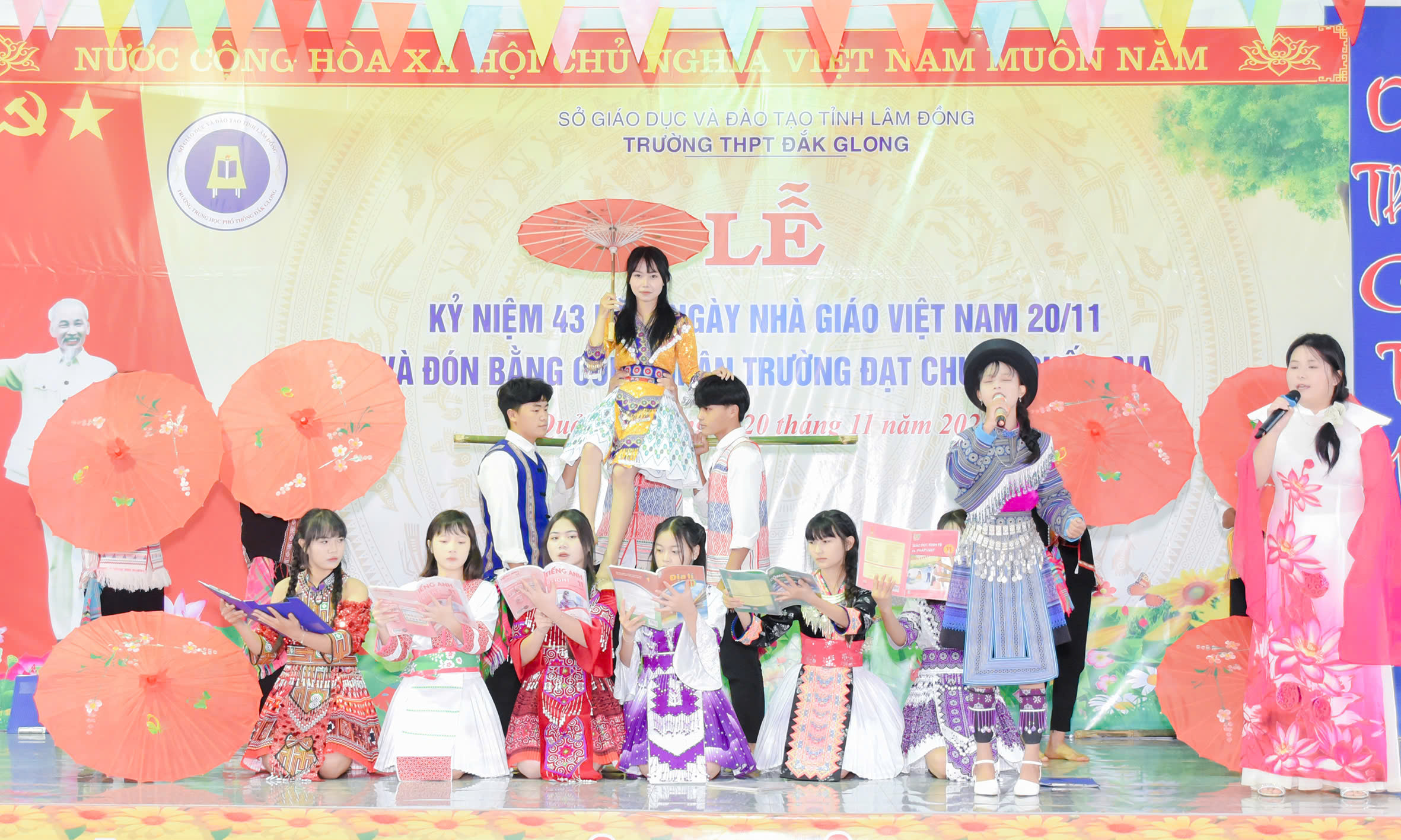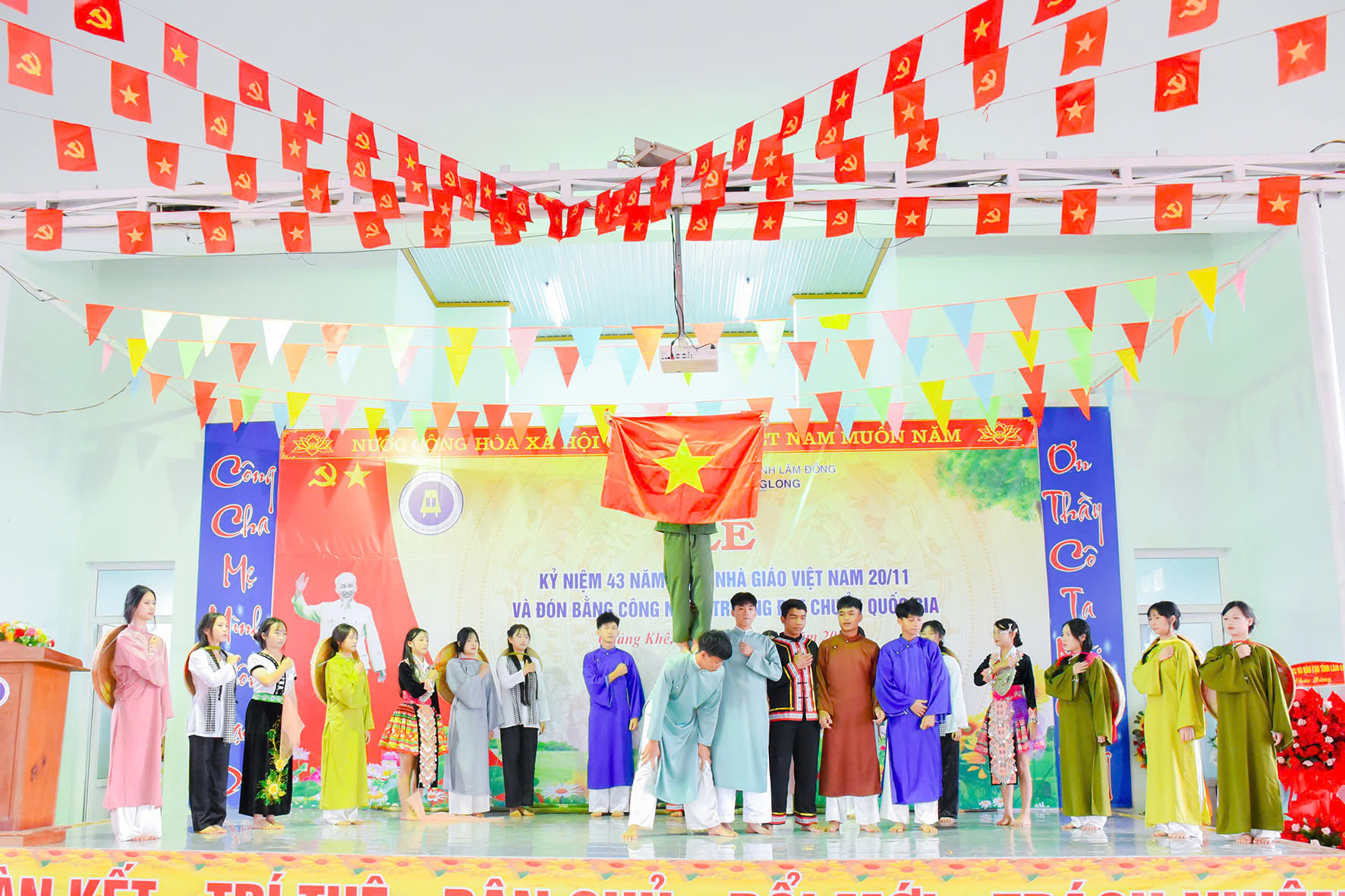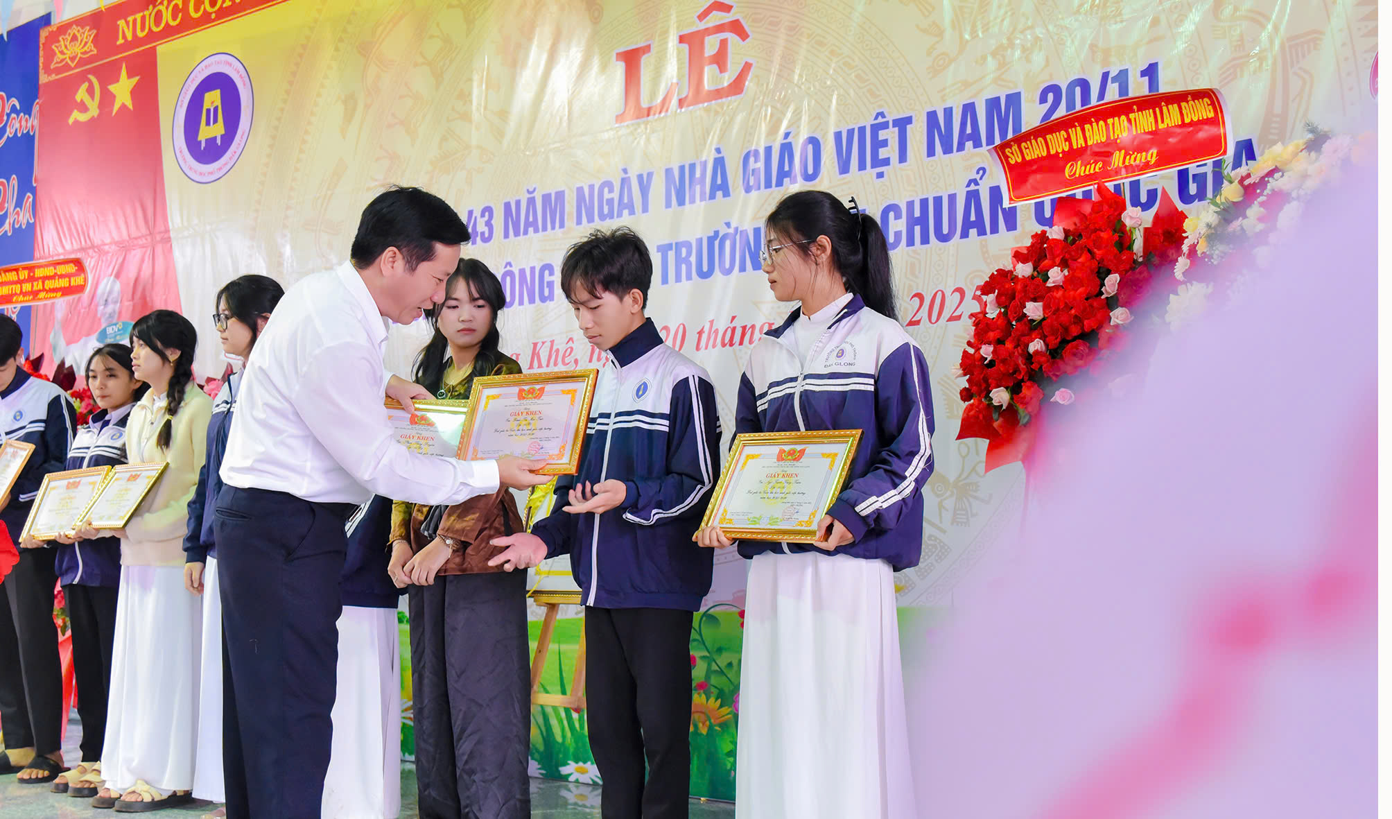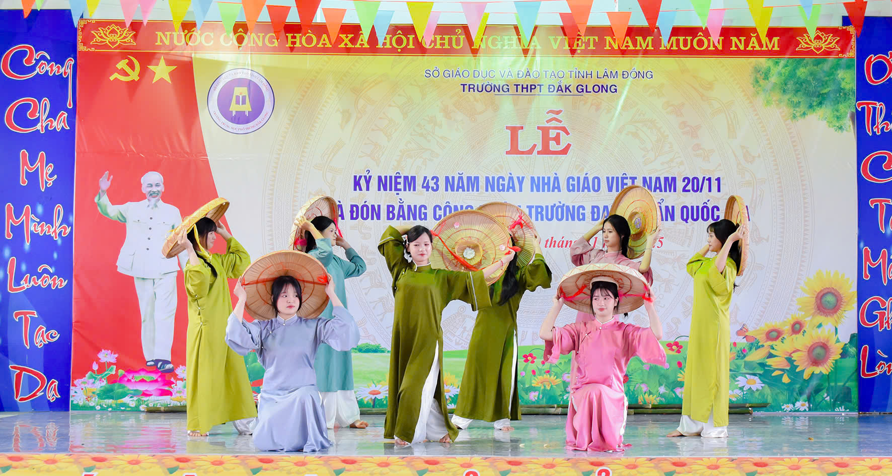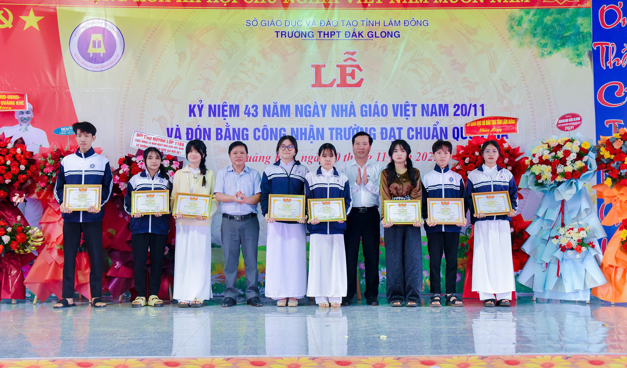 Tháng 11 lại về, hòa chung với niềm hân hoan của cả nước hướng về ngày 20 tháng 11 – Ngày tôn vinh những thầy cô giáo đã tận tâm gieo hạt tri thức, ươm mầm nhân cách cho bao thế hệ học trò; hôm nay vào lúc 07h45 phút ngày 20/11/2025, trường THPT Đăk Glong long trọng tổ chức Lễ kỷ niệm 43 năm Ngày Nhà giáo Việt Nam (20/11/1982 – 20/11/2025) và đón Bằng công nhân trường chuẩn quốc gia mức độ 1.