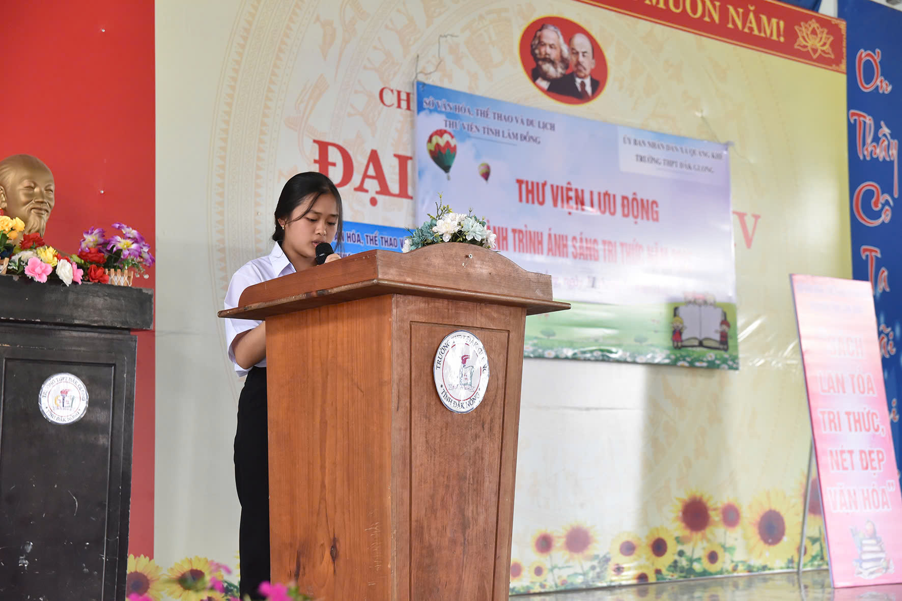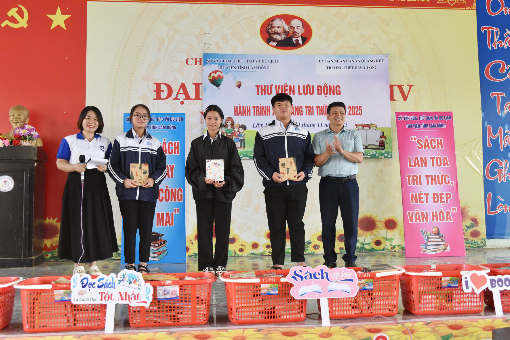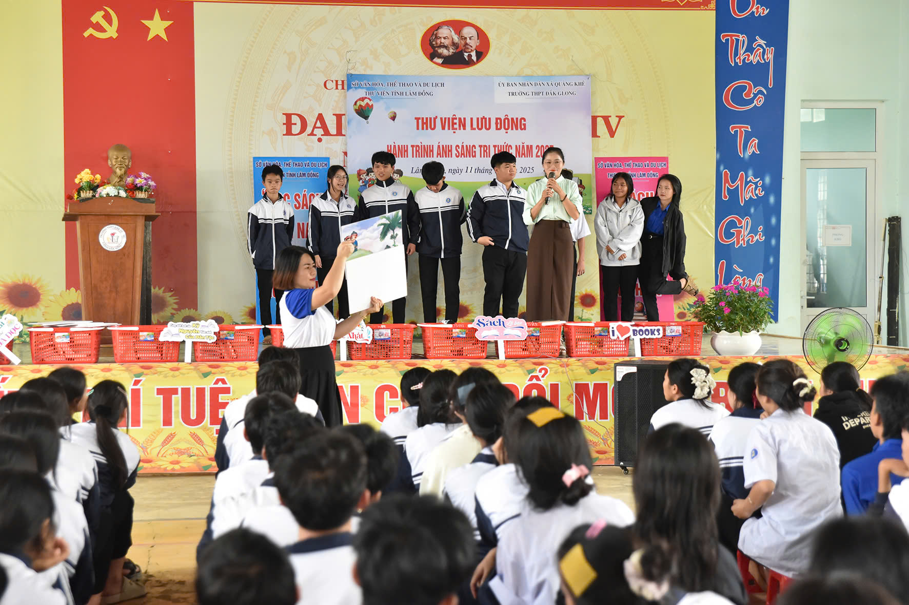 Harvey Mackay khẳng định rằng “Cuộc đời sẽ thay đổi theo hai cách: qua những người ta gặp và qua những cuốn sách ta đọc”. Thực vậy! Sách mở ra “những chân trời” kì diệu mà mỗi con người có thể học hỏi, thay đổi chính mình. Hưởng ứng chủ đề Ngày sách và Văn hóa đọc 2025 “Cùng sách bước vào kỉ nguyên vươn mình của dân tộc”, thư viện trường THPT Đắk Glong phối hợp với Thư viện tỉnh Lâm Đồng khu vực 3 tổ chức “Thư viện lưu động – Hành trình ánh sáng tri thức 2025″vào lúc 14h 00 phút ngày 11 tháng 11 năm 2025 tại Nhà đa năng.