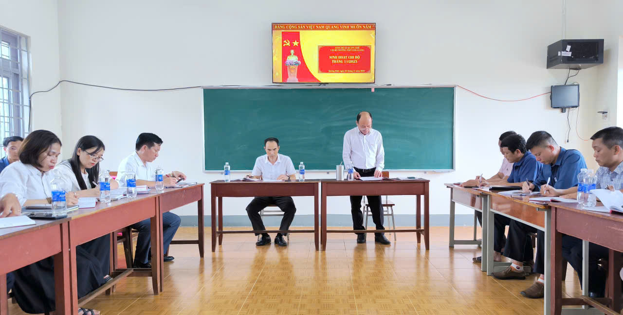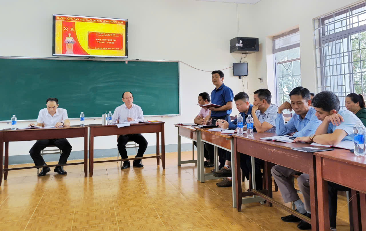 Tham dự sinh hoạt Chi bộ, có đồng chí Tạ Đình Hải – Phó Bí thư thường trực Đảng ủy xã Quảng Khê, trước khi bước vào buổi sinh hoạt, đồng chí đã thay mặt Đảng ủy xã Quảng Khê trao Quyết định bổ nhiệm chức vụ Bí thư chi bộ cho đồng chí Trịnh Văn Thương – Hiêu trưởng nhà trường.