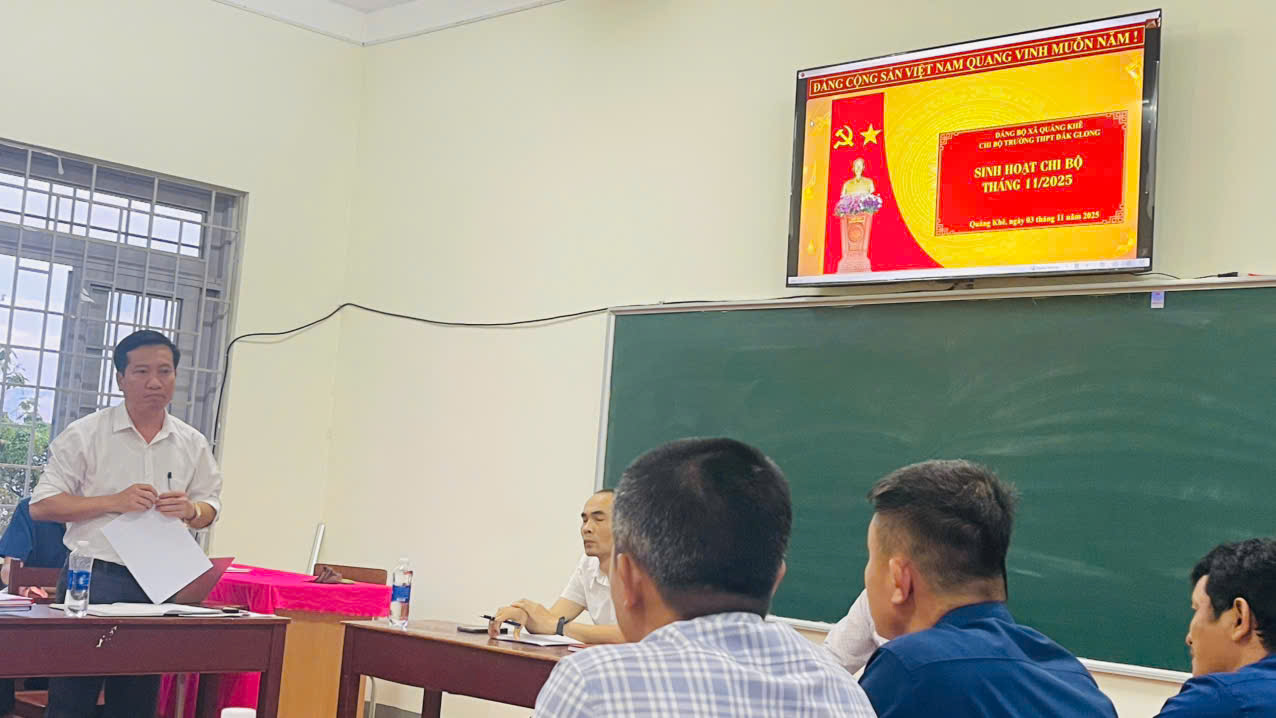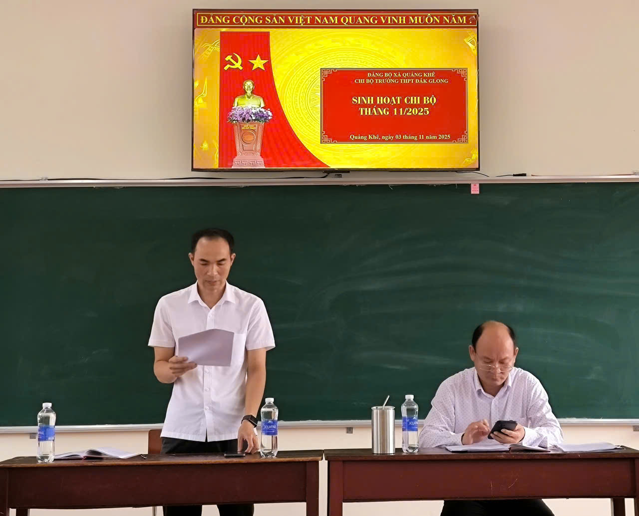 Mùa tri ân tháng 11 lại về – tháng có ý nghĩa đặc biệt với nhà giáo. Với các thầy cô trường THPT Đăk Glong cũng vậy, đây không chỉ là dịp để chúng ta tri ân – tôn vinh, đồng thời cũng là lúc nhìn lại hơn nửa chặng đường đã qua của học kì 1. Nhằm đánh giá những kết quả đạt được trong tháng 10, đồng thời đặt ra mục tiêu, phương hướng và nhiệm vụ cho tháng chủ điểm. Vào lúc 15 giờ 00 phút, ngày 03 tháng 11 năm 2025 Chi bộ trường THPT Đắk Glong tổ chức sinh hoạt tháng 11.